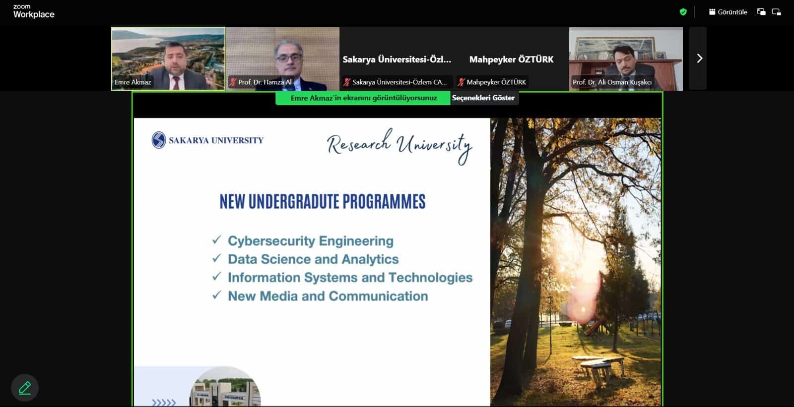 İki üniversite arasında ortak araştırma projeleri, akademisyen ve öğrenci hareketliliği, çift diploma imkanları ile kalite ve akreditasyon süreçlerinde iş birliği fırsatları masaya yatırıldı. Sakarya Üniversitesi Uluslararası Ofis Koordinatörü Dr. Öğr. Üyesi Emre Akmaz ile Araştırma Dekanlığından Doç. Dr. Hasan Algül, uluslararası projeler ve iş birliği olanakları hakkında sunum yaptı.