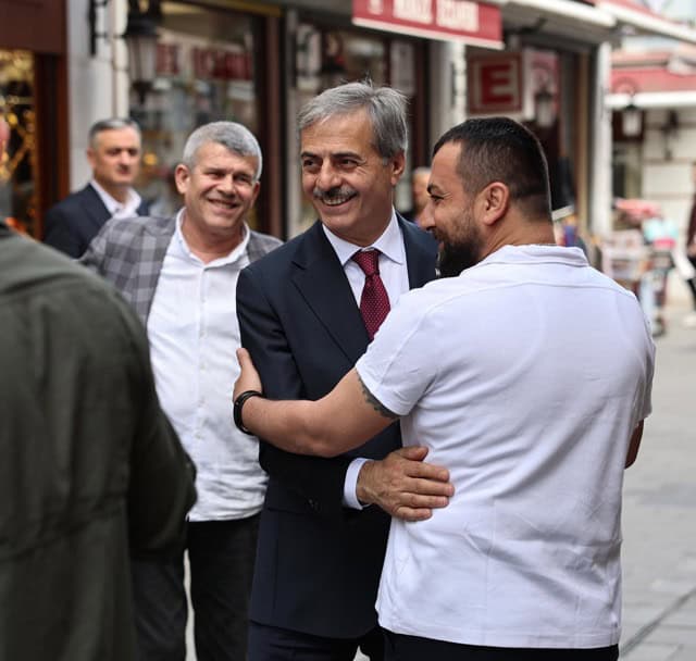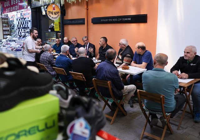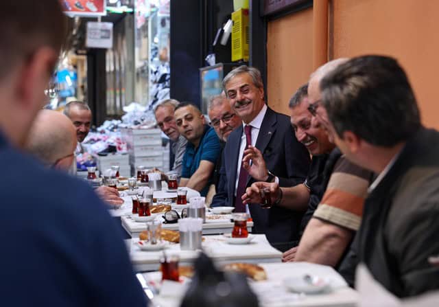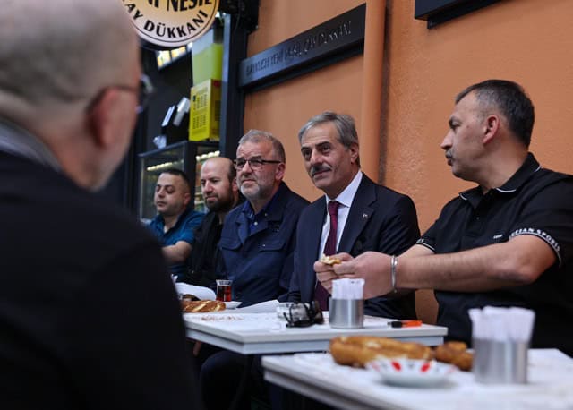 Bölge esnafıyla çay ve simit eşliğinde birlikte kahvaltı yapan Alemdar, Uzunçarşı’da başlayacak dönüşüm çalışmalarıyla ilgili istişarelerde bulundu.